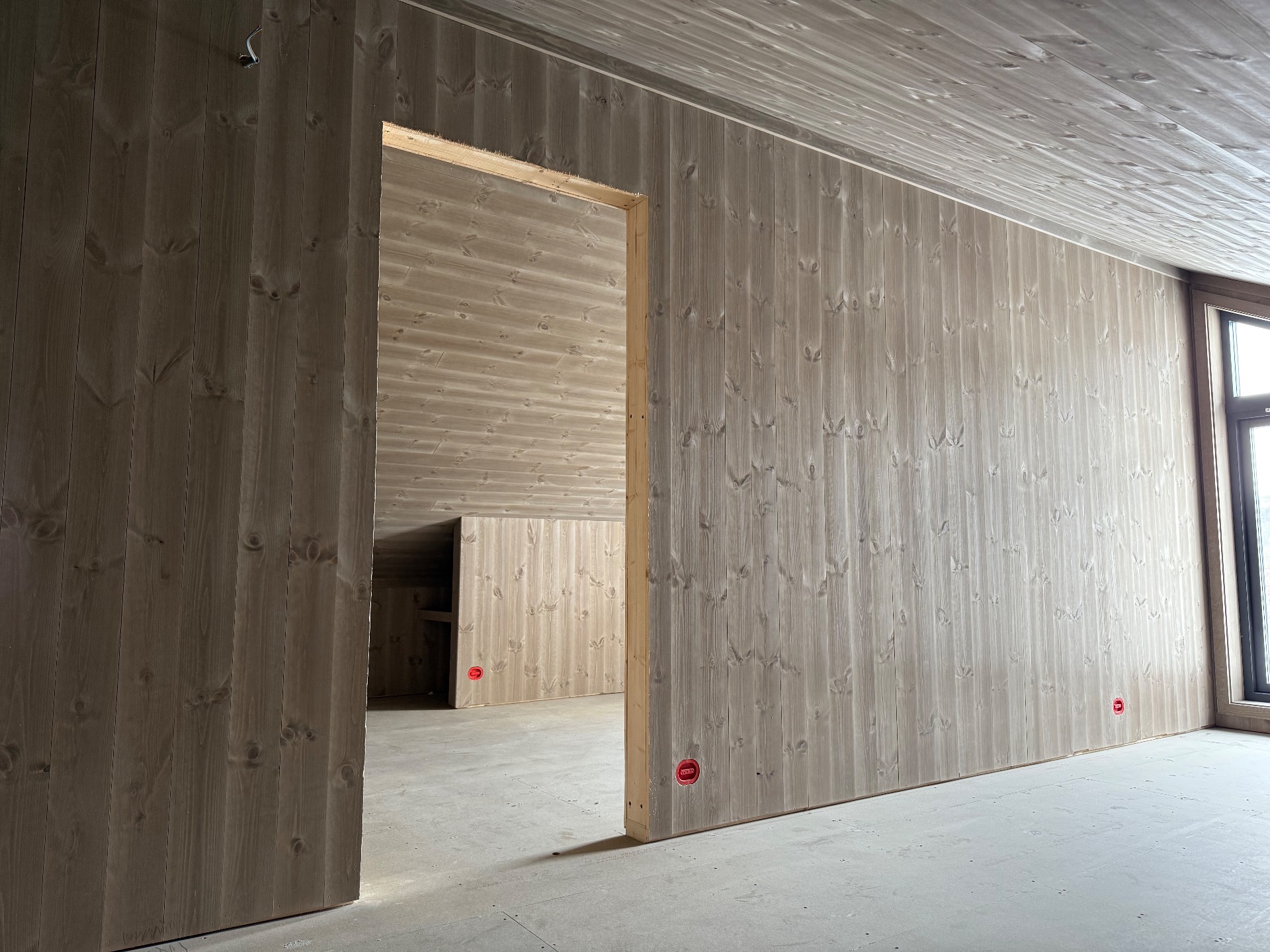 Kunden har mulighet til å gjøre egne valg for hytten så langt det lar seg gjøre. Det er fremdeles mulig å velge kjøkkenfronter, benkeplate og baderomsinnredninger. Panel på vegger og parkett på gulv, samt fliser, er montert.