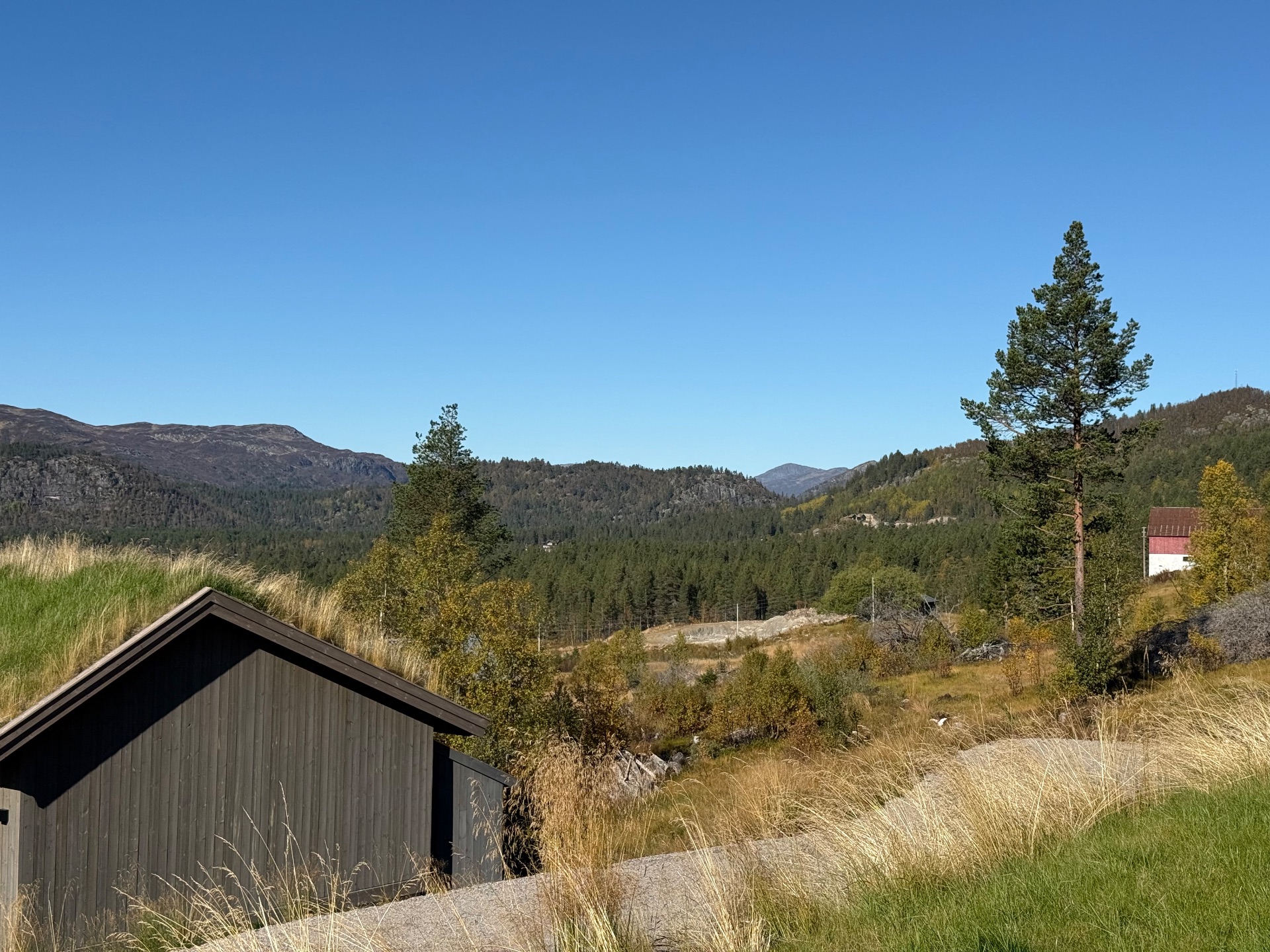 Plassering i fjellsiden med befriende utsikt så langt øyet kan se