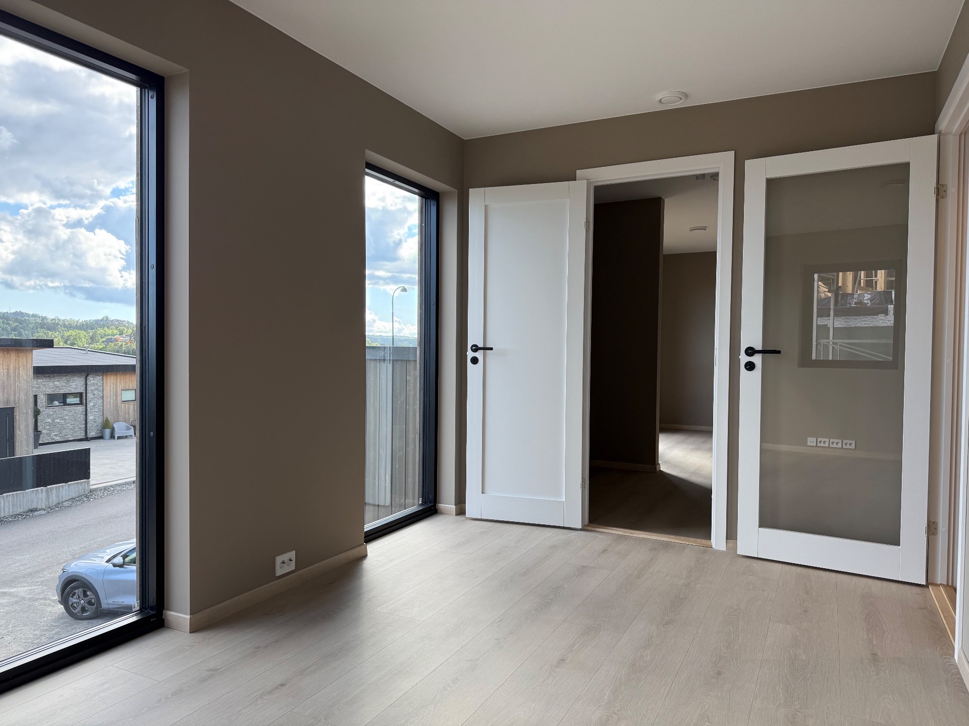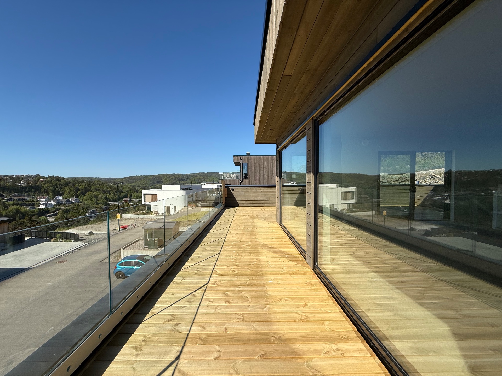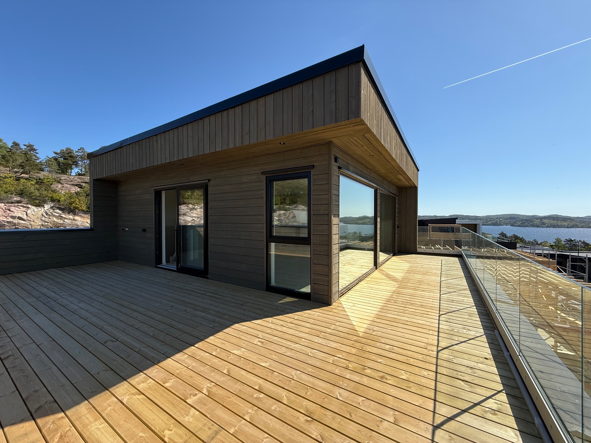 En moderne enebolig med 3 terrasser, hage og utleiemulighet.