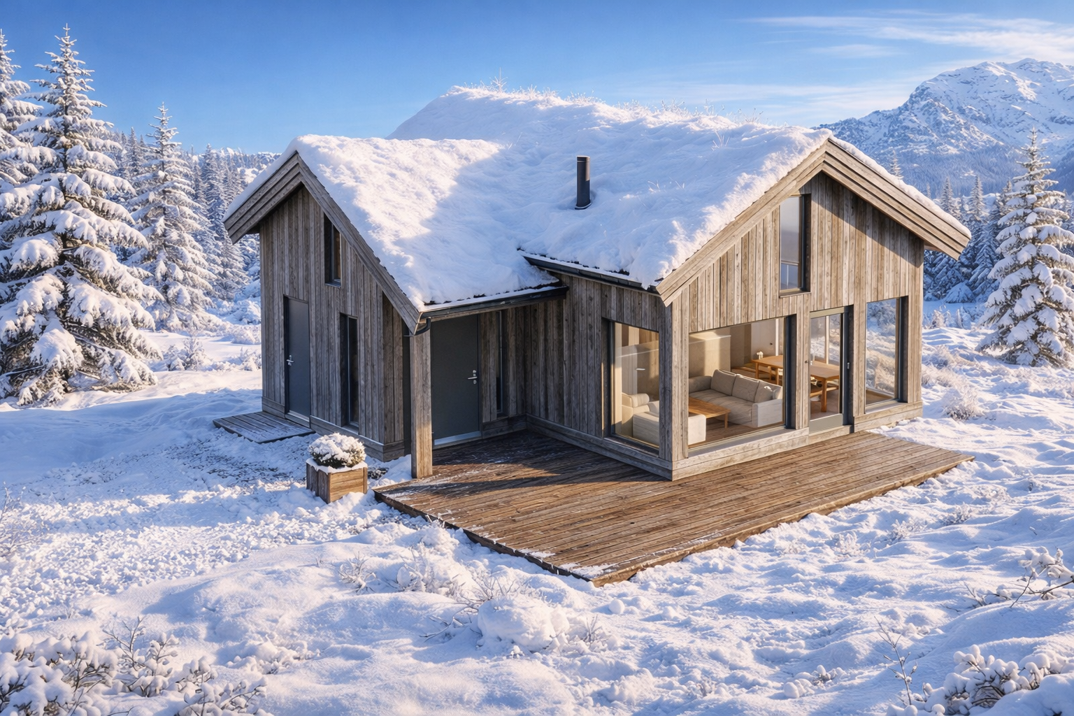 Komplett ferdig hytte (uten garasje, eks. tomt): 3.600.000 kr + omkostninger