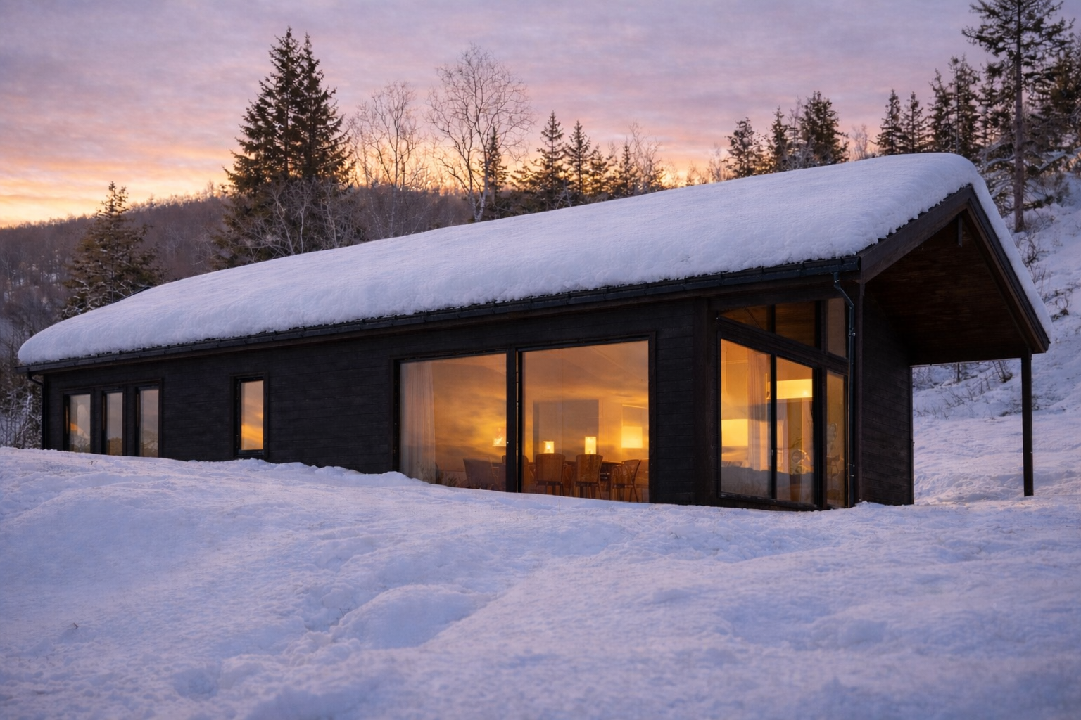 Denne hytten spesialtilpasses tomten – ta kontakt med oss for pris og mer informasjon om hyttemodell D.